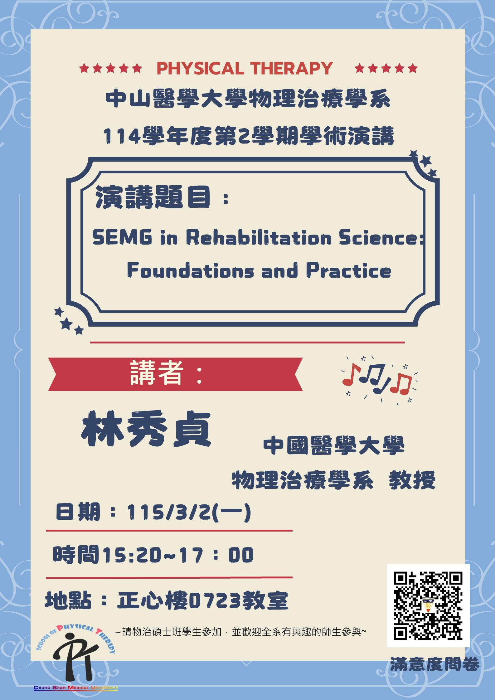 【物理治療學系 演講公告】